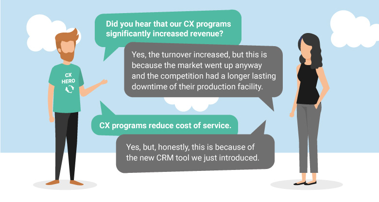 So far, so good. But at a certain point during CX programmes, the decision-makers in your company will ask you about the value of CX. For example, in the context of upcoming budget planning or unexpected challenges, like the current Covid-19 pandemic. In critical cases like this one, the value of CX programmes is even more relevant. Every CX practitioner knows the high-level metrics of increased sales, reduced cost of service and improved employee satisfaction. But these metrics are too general to invalidate specific counterarguments. Here are two examples: